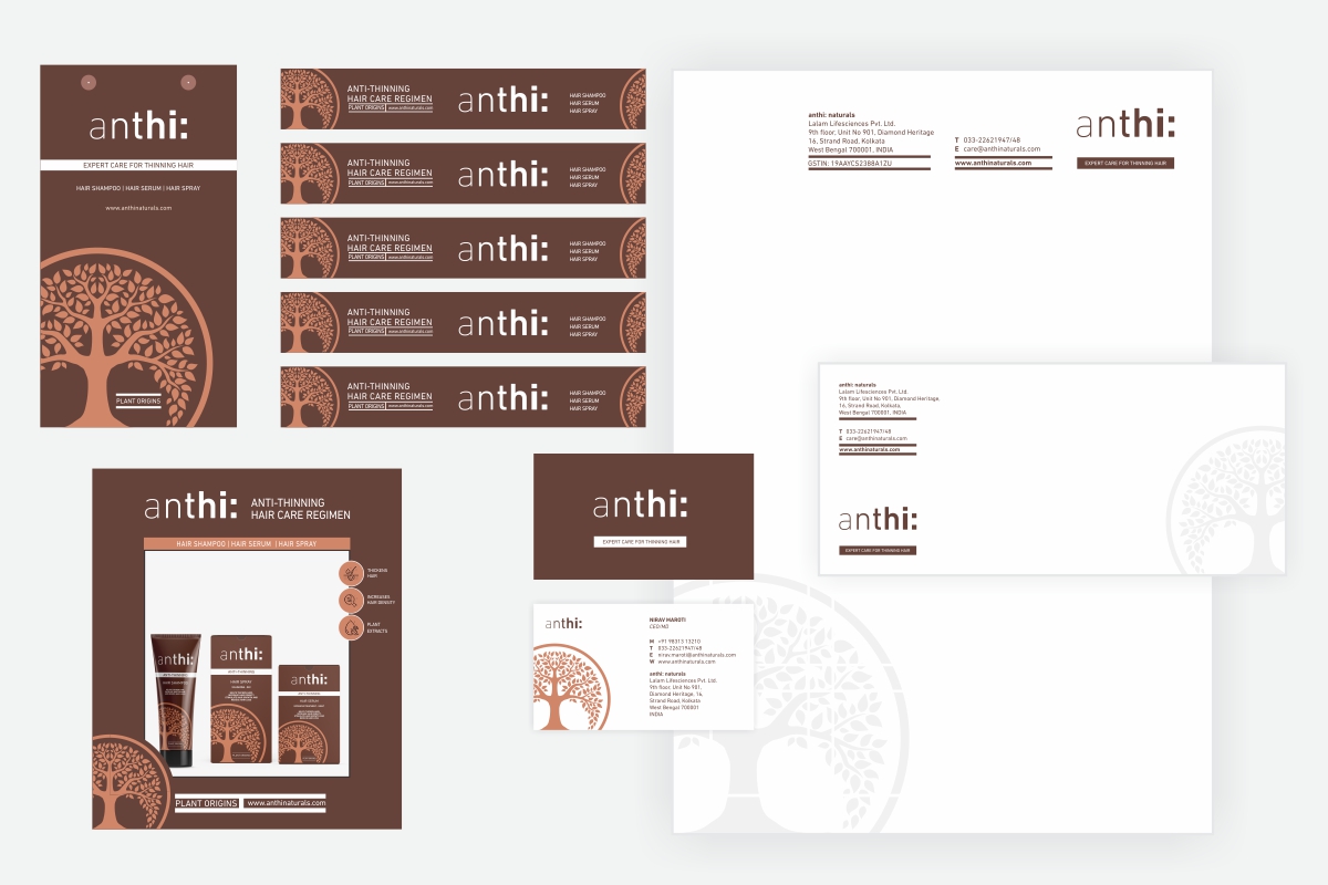 DesignAnswers crafted Anthi’s brand identity, reflecting its plant-based, honest hair care solutions with a meaningful logo and nature-inspired design.