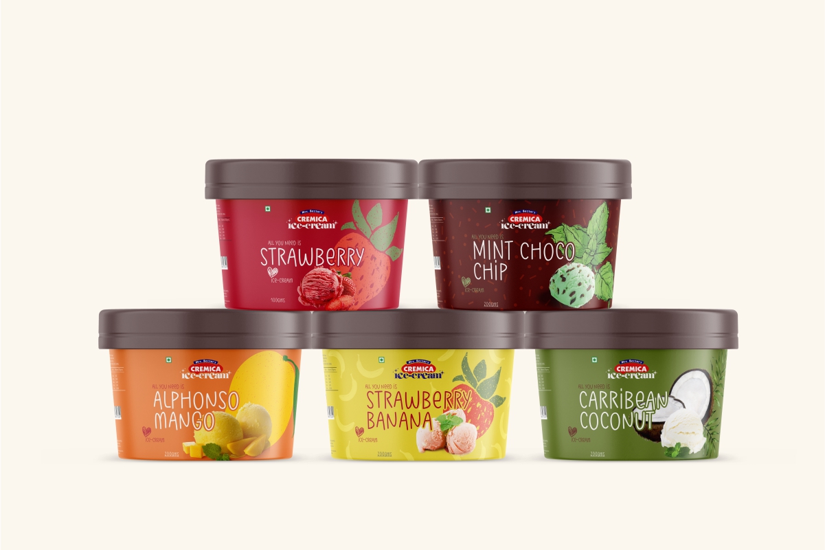 Mrs. Bector’s Cremica Ice Cream’s new design is bold, fun, and sophisticated, enhancing brand recognition while evoking nostalgia and indulgence.