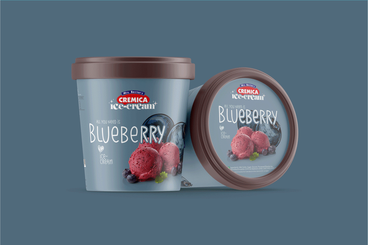 The revamped Mrs. Bector’s Cremica Ice Cream packaging blends elegance with playfulness, ensuring strong brand identity. Its fresh, modern design creates a visual treat, evoking nostalgia while enhancing the overall indulgent experience.